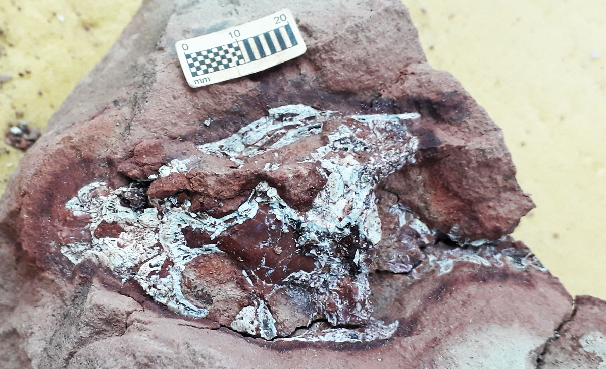 Segundo ele, o crânio está articulado às vértebras cervicais e parte da cintura escapular, indicando possível soterramento rápido, o que acabou preservando o esqueleto em posição de vida. Esse achado é o primeiro crânio revelado por Nava neste ano e também sugere que o afloramento de rochas de onde aparecem tais fósseis pode ter potencial para novas descobertas.