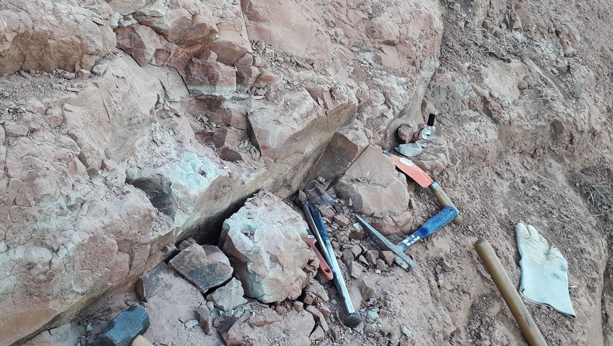 “Escavei com cuidado e, numa fratura natural da rocha de arenito, parte do bloco desprendeu do barranco, revelando outros restos ósseos em seu interior. Os fósseis foram então trazidos ao laboratório do Museu de Paleontologia de Marília para trabalhos de preparação mecânica com equipamentos como caneta preparadora, estiletes e outras pequenas ferramentas. Aproveitei os feriados da semana passada para remover pequenas porções de arenitos que recobrem os fósseis, e nessa atividade, surgiram também evidências do crânio do crocodilo”.