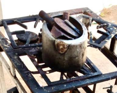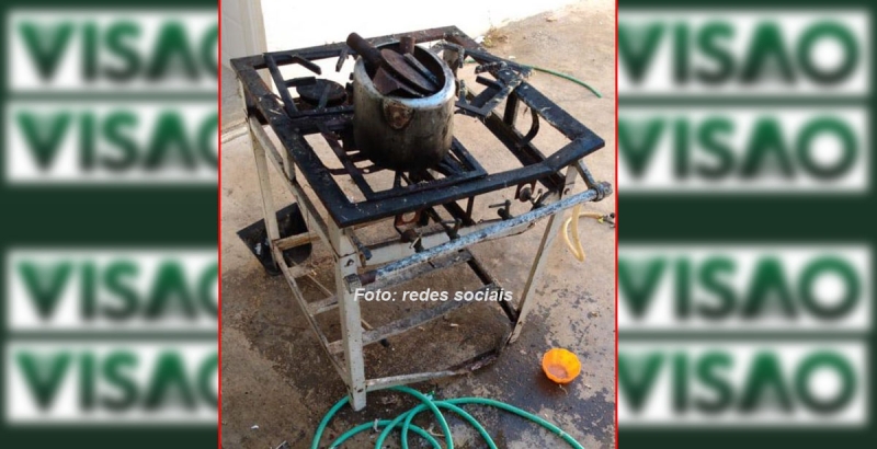 A panela estava sendo utilizada num fogão industrial que, com o impacto "de volta" do utensílio doméstico, ficou bastante danificado.