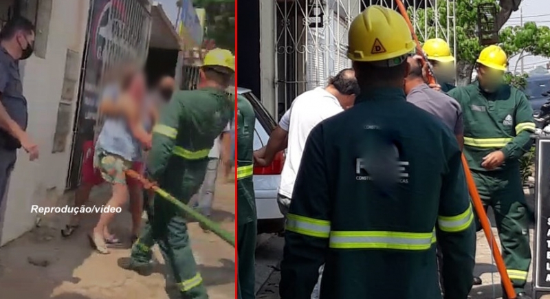 O desespero foi tanto que a esposa do proprietário tentou impedir a força o corte, pegando o equipamento que era usado pelos funcionários.