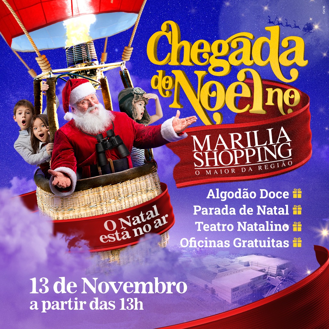 E, para a comemoração ser completa, o Marília Shopping apresenta o espetáculo 'A Magia de Sonhar', que conta a história da chegada do Papai Noel que, junto com seus ajudantes irão lembrar que chegou o momento de acender as luzes e deixar que os bons sentimentos dessa época entrem no coração de todos.