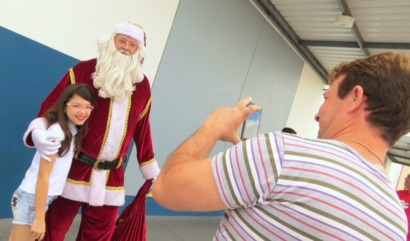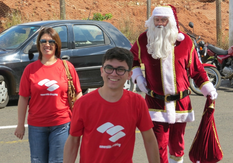 A chegada do Papai Noel ao Esmeralda Shopping, que vai acontecer na noite deste sábado (21), foi anunciada no período da manhã pelo próprio "bom velhinho" ao percorrer as ruas centrais da cidade, distribuindo balas e fazendo a festa com as crianças e famílias.