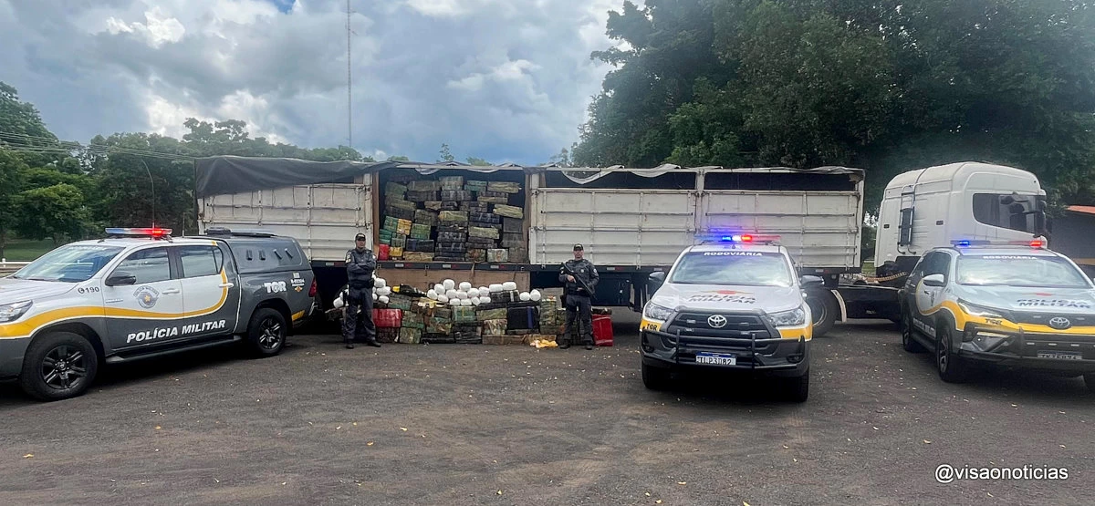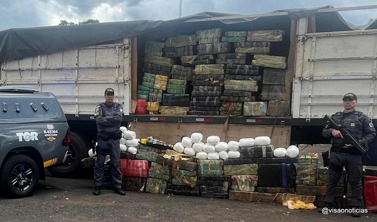 Durante a vistoria no veículo, foram encontrados mais de 2,9 mil quilos de maconha e 83,9 quilos de cocaína, totalizando mais de 3.013 mil quilos de droga. Aos policiais, o motorista informou que pegou a carga em Foz do Iguaçu (PR) e levaria até São Paulo(capital) e receberia R$ 5 mil pelo transporte.