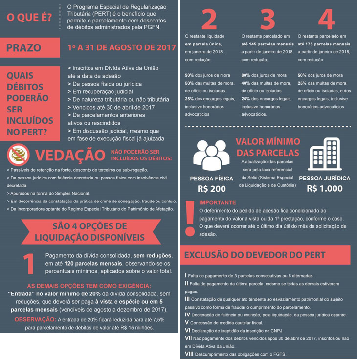 O contribuinte que quiser regularizar seus débitos administrados pela Procuradoria-Geral da Fazenda Nacional (PGFN) tem prazo até o dia 31 de agosto para aderir ao Programa Especial de Regularização Tributária (PERT). A adesão deverá ser feita no Centro Virtual de Atendimento ao Contribuinte da PGFN (e-CAC PGFN), por meio da internet.