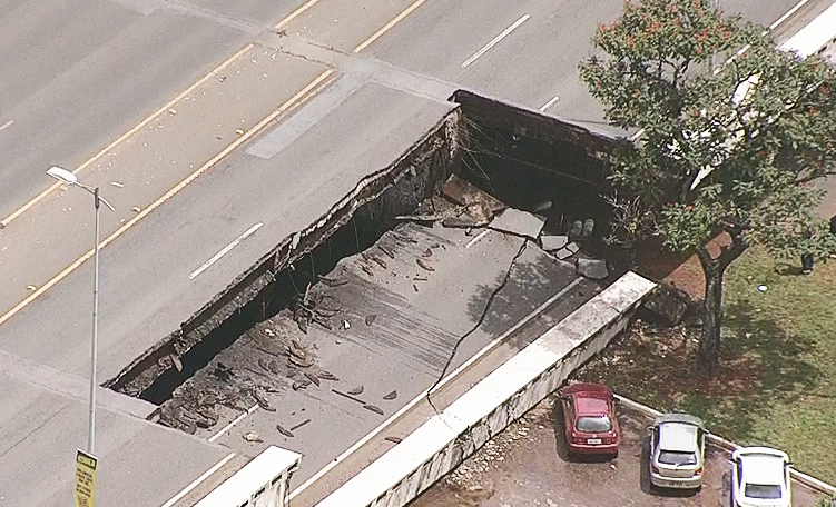 No último domingo (4), um outro desabamento ocorreu na garagem de um prédio localizado na 210 Norte, em meio às chuvas intensas que tem atingido a cidade. A parte do viaduto que desabou é toda faixa da pista no sentido Asa Norte. Neste momento, o eixo rodoviário está interditado ao tráfego. Da Agência Brasil.