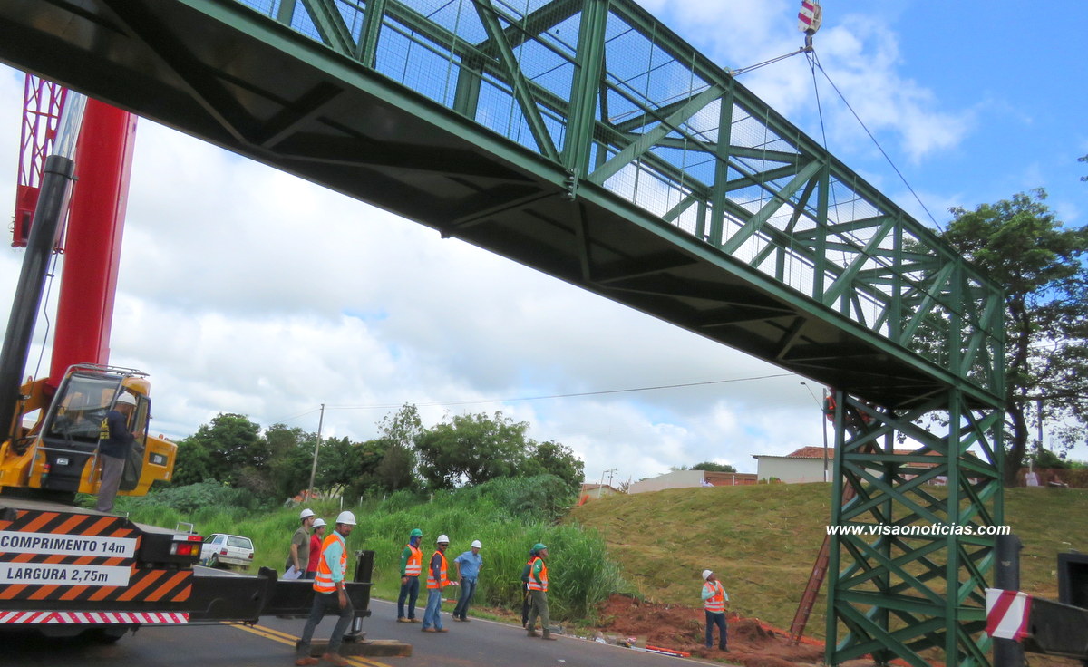 Tempo ajuda e passarela começa a ser instalada na SP-294 em Marília