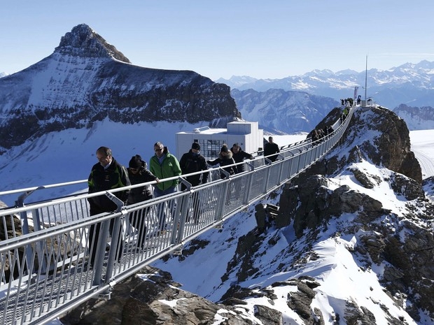 Uma passarela suspensa no ar, de 107 metros de comprimento por 80 centímetros de largura, foi aberta nesta sexta-feira (24) em Les Diablerets, nos Alpes Suíços.
