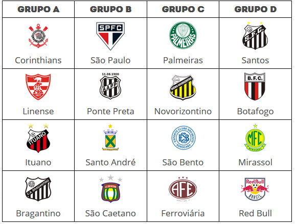 Em sorteio realizado na sede da Federação Paulista de Futebol nesta terça-feira (17), os grupos da primeira fase do Paulistão Itaipava 2018 foram definidos. O formato será o mesmo de 2017. Na primeira fase, que se inicia em 17 de janeiro, os 16 times jogarão contra as equipes dos outros grupos. Os dois melhores de cada avançam para as quartas de final, se enfrentando dentro do próprio grupo em ida e volta. Já os dois times de pior campanha na fase inicial serão rebaixados para o Paulistão A2 Itaipava.