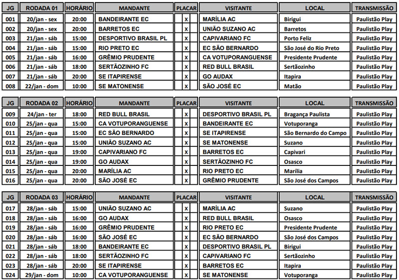 A Federação Paulista de Futebol divulgou na manhã desta segunda-feira (26) a tabela detalhada do Paulistão A3, cuja competição começa em janeiro.