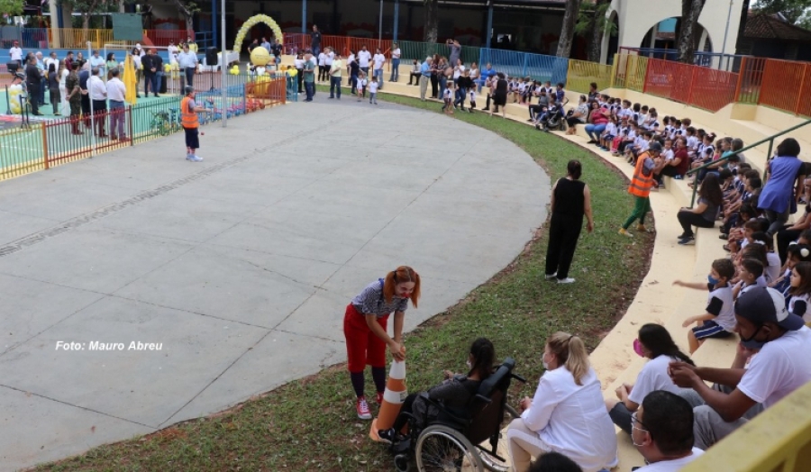 O prefeito Daniel Alonso abriu oficialmente, na Emei Monteiro Lobato, a Campanha Maio Amarelo 2022, que tem como tema “Juntos Salvamos Vidas”.