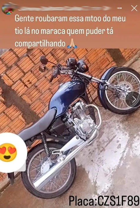 "Meu irmão depende da moto para poder trabalhar", afirmou Simone, em mensagem enviada ao Visão Notícias, pedindo para que fosse divulgado o fato e as fotos.
