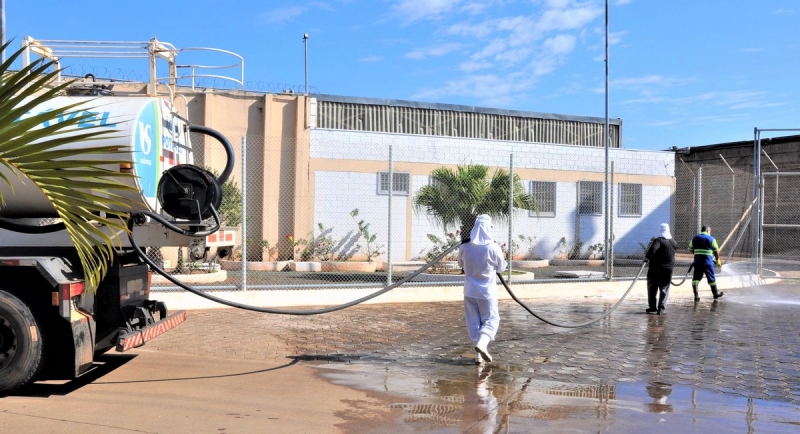 Para tanto, foi utilizada água clorada em alta concentração, visando promover a limpeza do local a fim de impedir a contaminação de servidores e reeducandos. Demais áreas de acesso coletivo também estão sendo higienizadas, diariamente, como portaria, refeitório, galeria central, salas administrativas e pavilhões habitacionais.