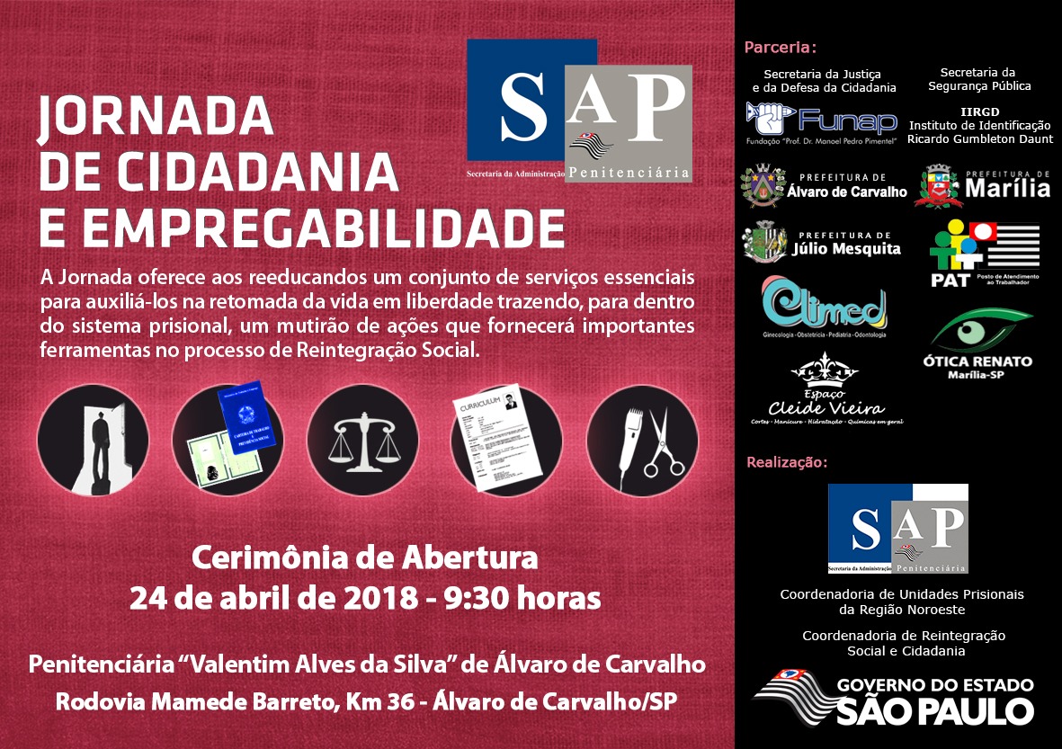 A Penitenciária “Valentim Alves da Silva”, de Álvaro de Carvalho, está realizando nesta semana a 3ª Jornada de Cidadania e Empregabilidade, com o objetivo de enfatizar as diversas atividades voltadas ao cidadão encarcerado, visando sua reinserção ao convívio social.