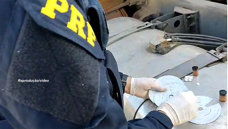 Um caminhoneiro de 66 anos foi flagrado pela Polícia Rodoviária Federal (PRF) transportando compromidos conhecidos popularmente como "rebite".