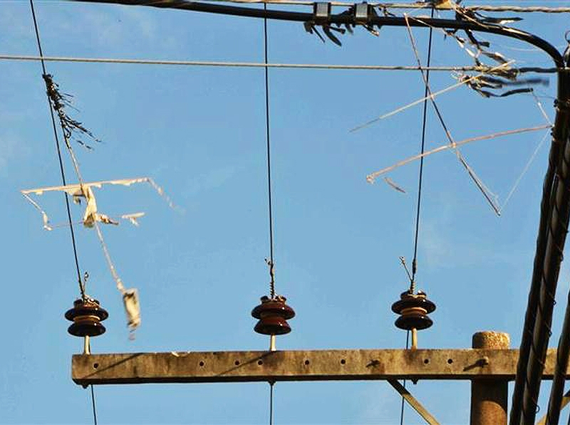 Outro problema ainda mais grave é quando as linhas estão com cerol (mistura de cola e vidro) porque aumenta ainda mais o risco de haver uma descarga elétrica, além de causar ferimentos em pessoas (principalmente motociclistas).