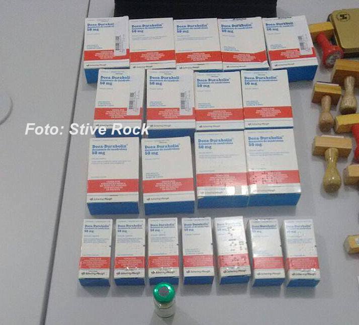 Dentro da sacola, foram encontradas caixas de anabolizantes e outros produtos de venda controlada.