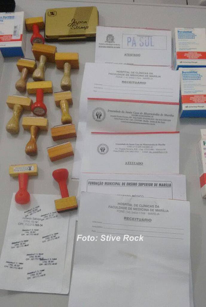 RECEITA - O personal trainer utilizava os carimbos e receituários para emitir atestados falsos, o que possibilitava comprar os medicamentos e consequentemente revendia.