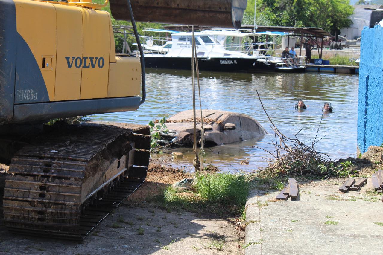 Os militares acionaram o Instituto Geral de Perícias (IGP) e também uma escavadeira, que auxiliou na retirada do veículo do Rio Piçarras.