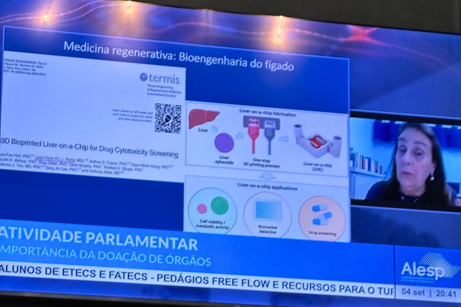 A Professora Dra. Maria Angélica Miglino, pesquisadora da Universidade de Marília (Unimar), foi destaque no Ato Solene “Doando Vidas”, realizado no Plenário Dom Pedro I da Assembleia Legislativa do Estado de São Paulo (Alesp). O evento, promovido pelo Deputado Tomé Abduch em parceria com a Business Professional Women – São Paulo (BPW-SP), reuniu autoridades, pesquisadores e lideranças da sociedade civil para debater e estimular a cultura da doação de órgãos e tecidos.