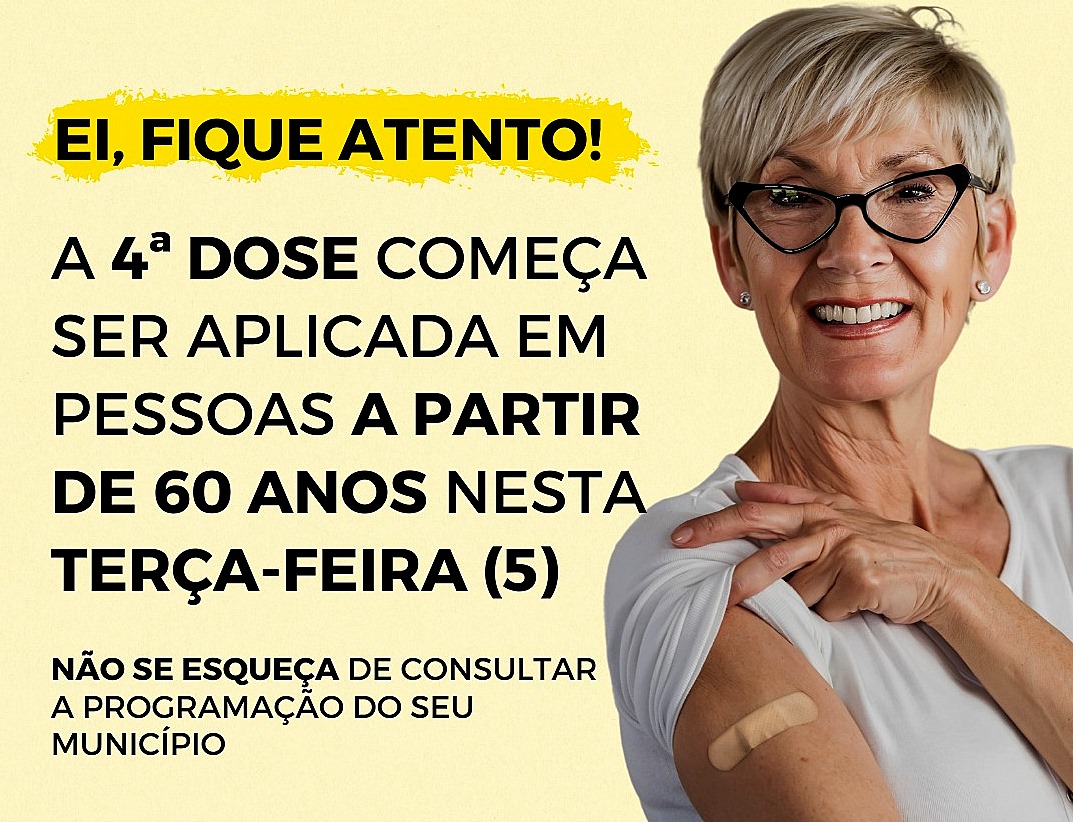 Poderão ser imunizadas todas as pessoas com 60 anos e mais que tenham tomado a 3ª dose há mais de quatro meses.