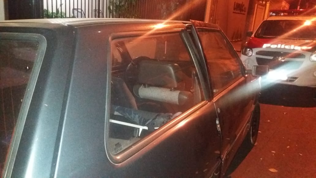 Com apoio de várias equipes, a Polícia Militar encontrou nas imediações, o veículo Uno Mille com sinais de arrombamento e a vítima ao ser localizada reconheceu todos os produtos.
