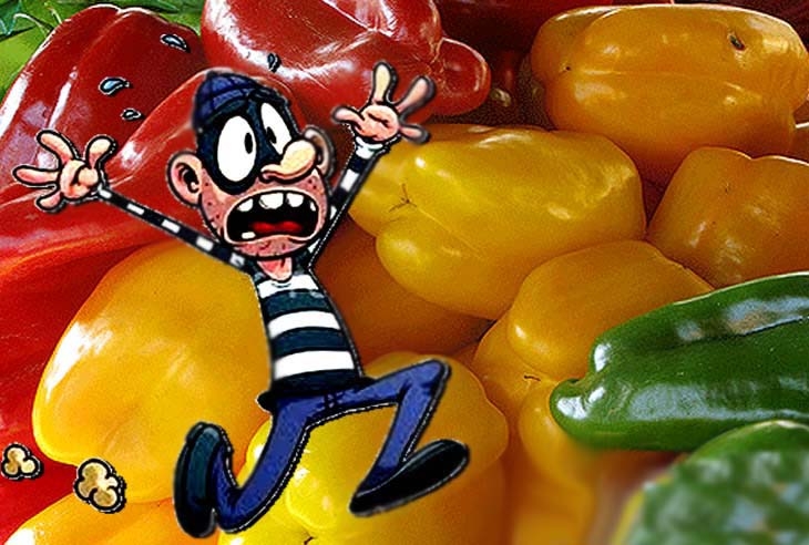 Furtou pimentões, mas deixou vários pelo caminho: acabou preso