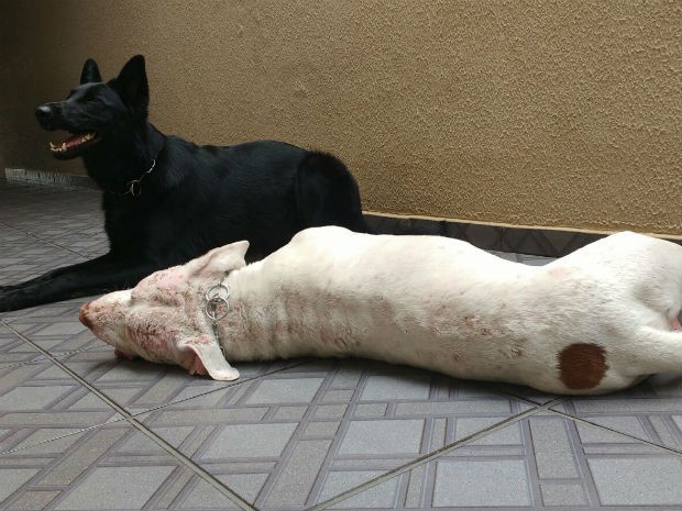 Mesmo apresentando evolução nos machucados da pele, os medicamentos não conseguiam apagar os traumas causados pela violência. Neste momento, foram essenciais não só o carinho dos novos donos, mas também o apoio de uma nova amiga: a pastor-alemão Amora.