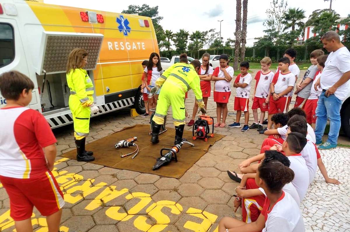 Socorristas da empresa São Francisco Resgates, que realizam o trabalho de salvamento nas estradas da Concessionária, também mostraram às crianças os equipamentos que compõem a UR (Unidade de Resgate), um dos veículos utilizados para fazer o atendimento dos usuários.