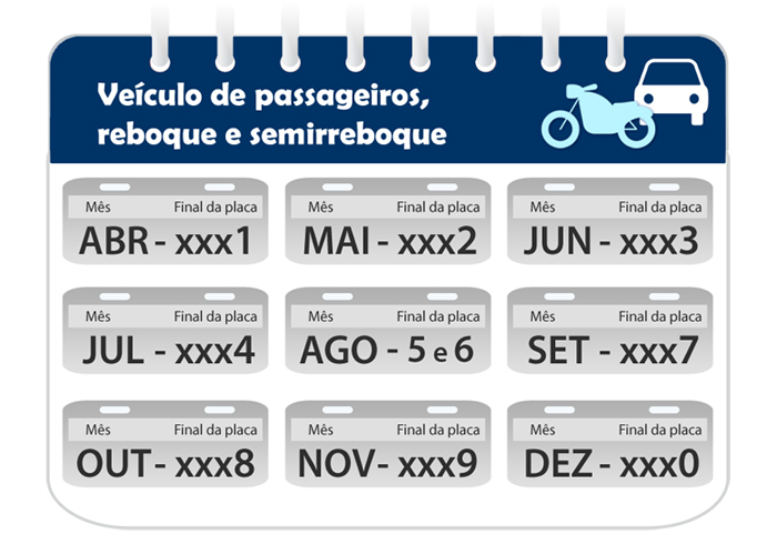 Além disso, conduzir veículo não licenciado é infração gravíssima. O Código de Trânsito Brasileiro (CTB) prevê multa de R$ 293,47, sete pontos na habilitação e remoção do veículo a um pátio.