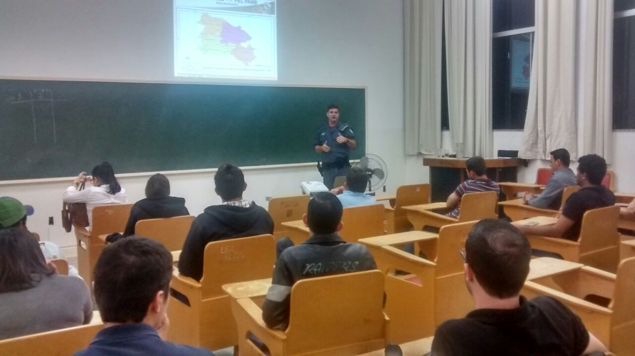 Policiais Militares do 1º Pelotão de Polícia Ambiental de Marília ministraram na última semana uma importante palestra aos alunos do curso de Agronomia da Faculdade Paulista de Lupércio (40 quilômetros de Marília).