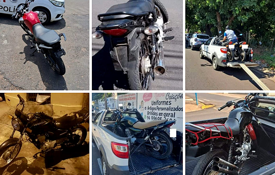 Motos que foram apreendidas pela PM em Tupã (montagem: Tupaense Notícias).