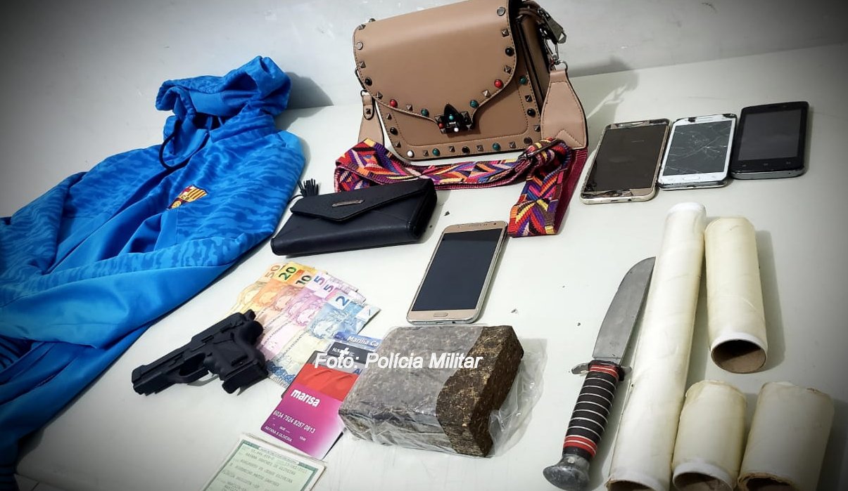 Eles acabaram confessando o roubo. Na casa de um deles, foram recuperados os objetos da vítima do assalto (inclusive um celular), além de apreendido um tablete de maconha e apetrechos para cortar e embalar. Ambos foram reconhecidos e presos em flagrante por roubo e tráfico.