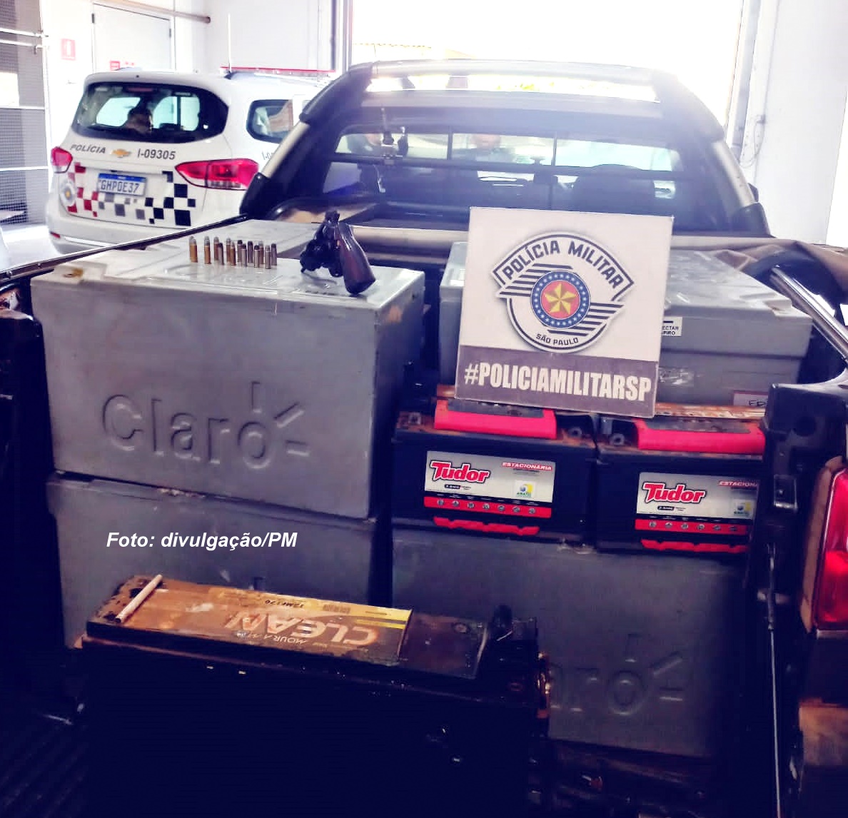 Bingo! Os PMs encontraram 16 anormes baterias que haviam sido furtadas.