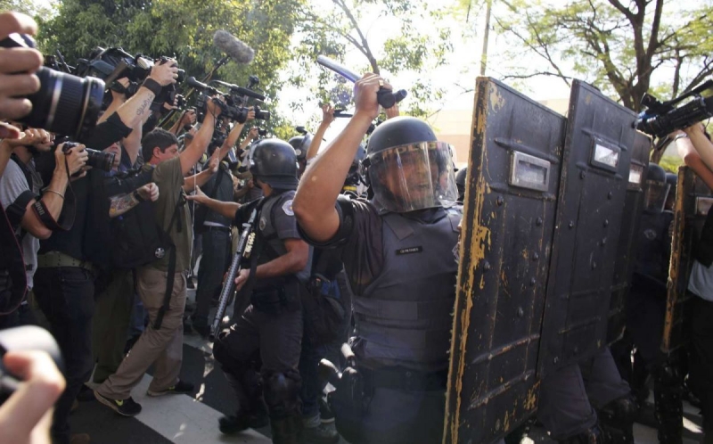 Dezenas de atos contra a Copa foram marcados, por meio de redes sociais, para o dia de abertura do torneio.