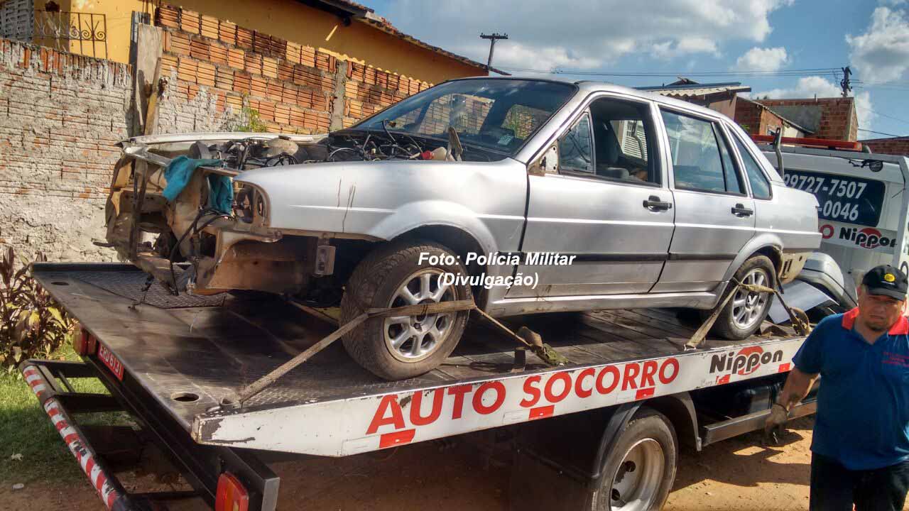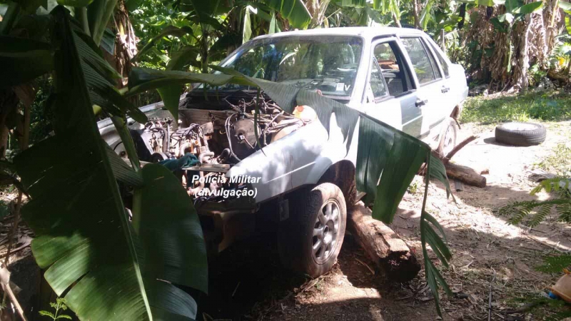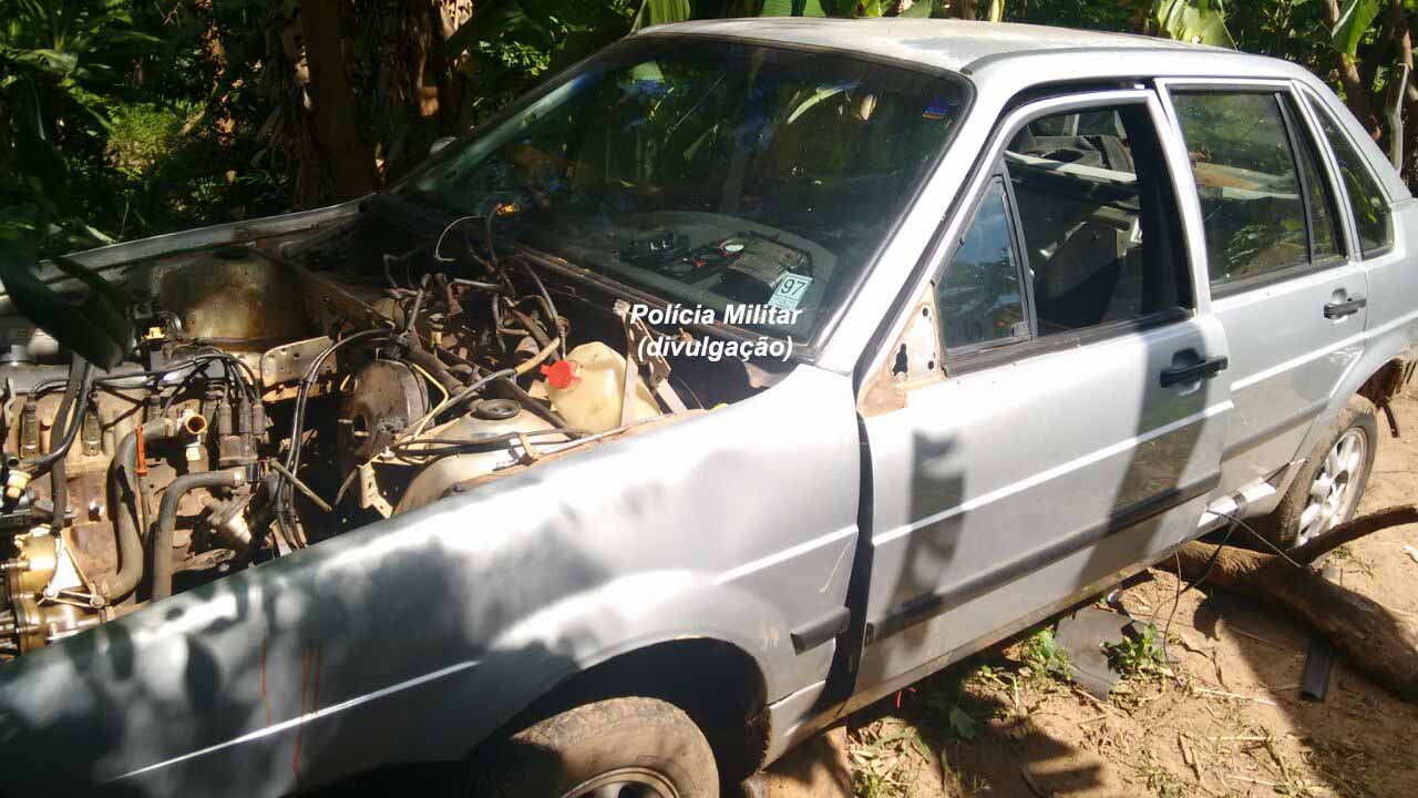 O carro, um Santana ano 96, estava sem as placas e algumas peças já haviam sido