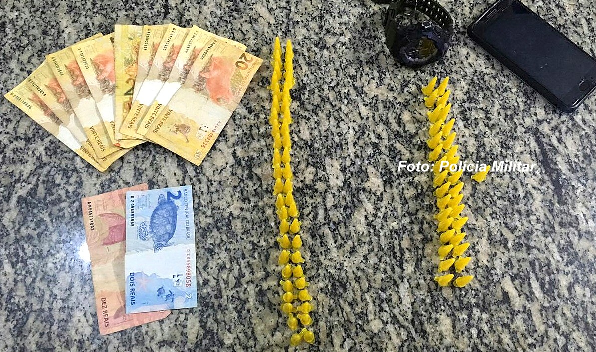 Em revista pessoal foi localizado a quantia de R$ 192.75. Já outro indivíduo foi visto também que ele jogou algo no chão antes de ser detido. Policiais militares constataram que eram 46 pinos de crack.