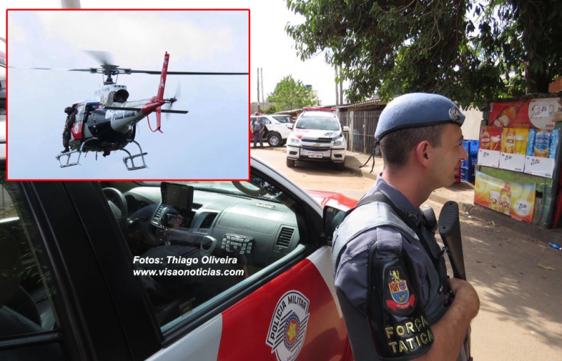 Equipes da Força Tática da Polícia Militar, com apoio do helicóptero Águia, fazem neste momento uma varredura na favela da Vila Barros, considerada um dos principais