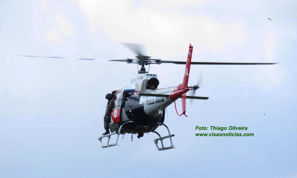 Helicóptero águia sobrevoa a área da vila Barros com equipe em prontidão.