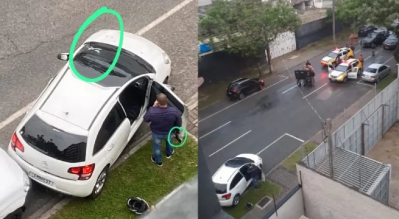 Um soldado da Polícia Militar atirou oito vezes em direção ao carro da ex-mulher em Curitiba. Segundo a PM, depois dos disparos, Dyegho Henrique Almeida da Silva entrou no veículo e fez a enfermeira Franciele Correia e Silva, 28, de refém.