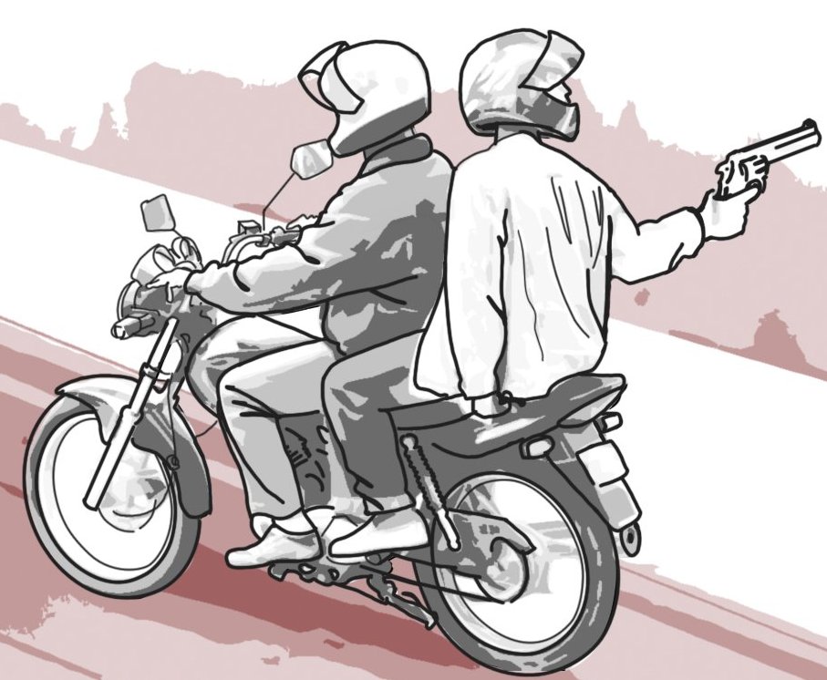Durante a busca pessoal, foi localizado com o garupa (iniciais de 19 anos) uma arma de fogo em sua cintura, enquanto que com o condutor para foi encontrado. Depois de muita conversa, eles confessaram aos policiais militrares que pretendiam roubar uma motocicleta naquela região e em seguida assaltar um estabelecimento comercial.