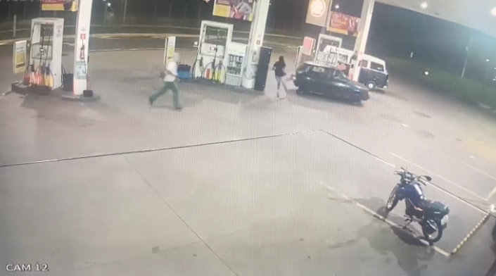 A dupla armada de simulacro e faca surpreendeu clientes que abasteciam seus veículos no local.
