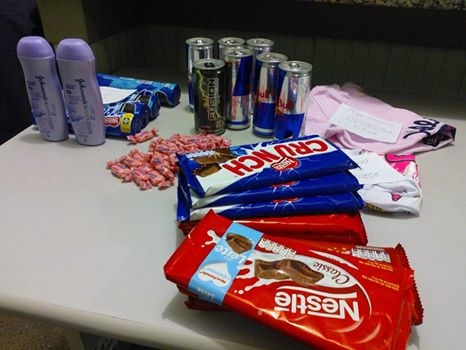 Foram apreendidas sete latas de energético, quatro pacotes de biscoito, dois frascos de loção hidratante, 11 barras de chocolate e 30 balas de yogurte.