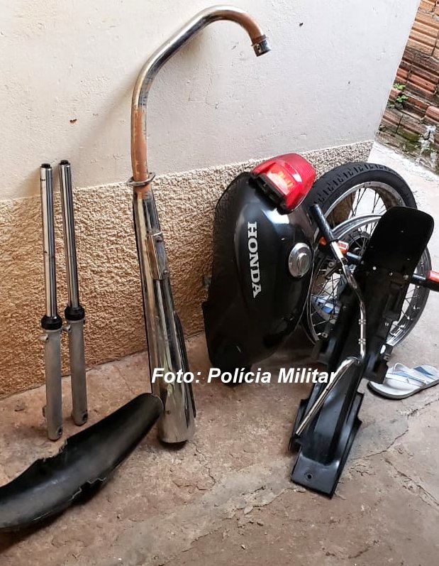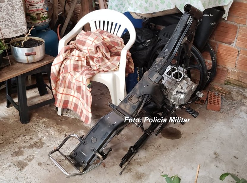 O proprietário de uma motocicleta que havia sido furtada há cerca de 20 dias teve uma alegria e uma decepção ao mesmo tempo. A boa notícia foi de que o veículo havia sido recuperado pela Polícia Militar. A notícia desagradável é de que estava totalmente desmontada e agora terá um trabalhão para juntar todas as peças.