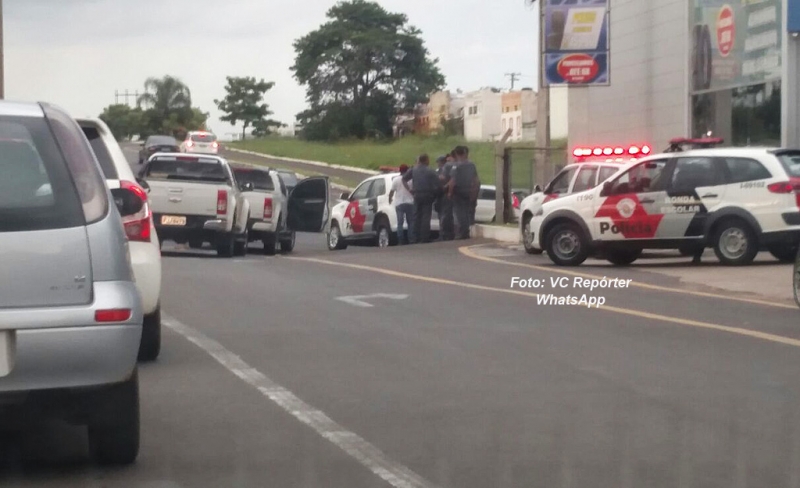 Foi no final desta tarde na avenida Castro Alves, rotatória da antiga churrascaria Alvorada. Um cabo da PM, que trabalha no Batalhão em Marília, estava de folga e passeava com a família em sua camionete Gm S10 branca. Em determinado momento, ele avistou outra caminhonete identica e com a mesma placa.