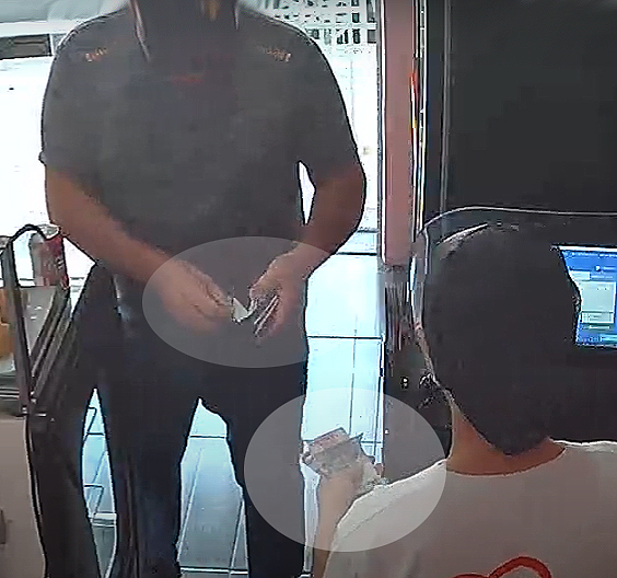 De acordo com a proprietária do estabelecimento, o homem queria pagar o refrigerante com uma nota de R$100,00. Ela questionou se não tinha uma nota de menor valor, para facilitar o troco. Ele ofereceu então uma nota de R$50,00 para pagar por sua compra: um refrigerante no valor de R$6,00.