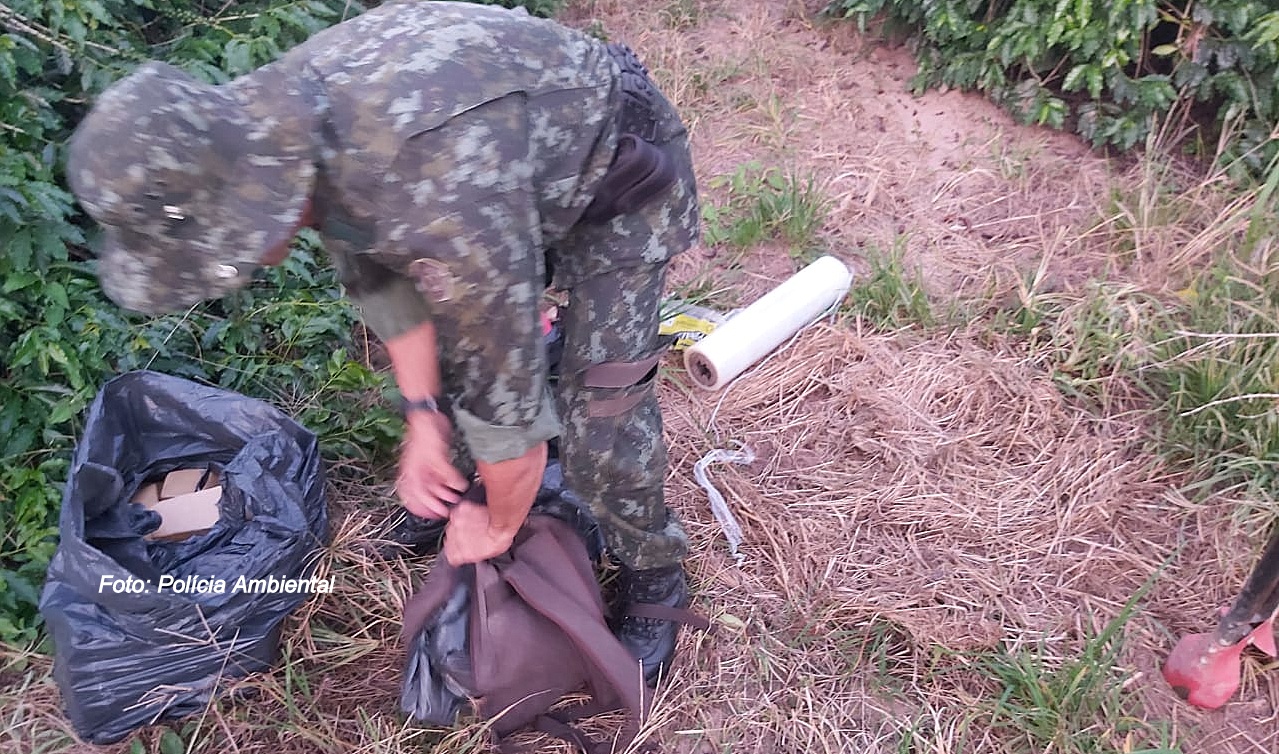 Traficantes se preparavam para enterrar a droga quando foram surpreendidos por policiais ambientais.