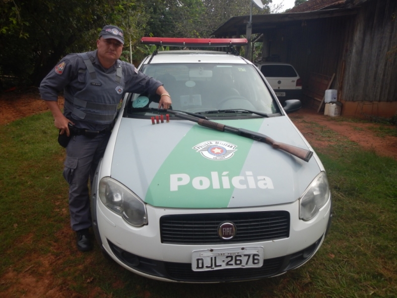 No município de Bastos uma espingarda calibre .12 carregada também foi apreendida em uma ocorrência semelhante. O responsável pela arma também responderá em liberdade.