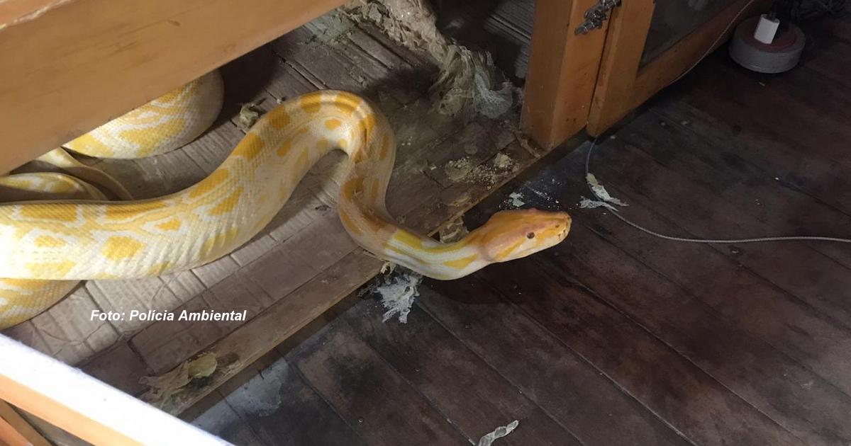 Serpente era mantida em cativeiro numa casa. Criador não tinha e acabou multado em R$ 2,2 mil