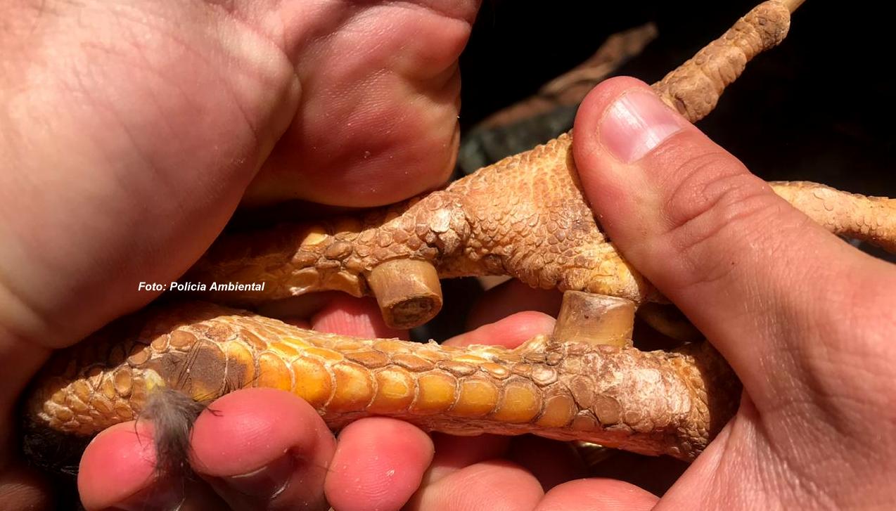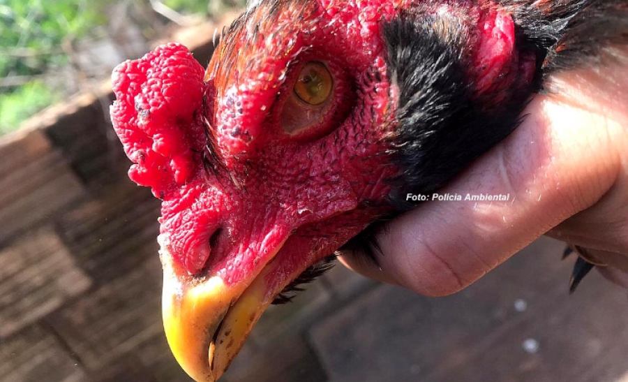 No local foram encontradas aves com vários sinais de utilização em rinha, como esporas serradas, cristas e barbelas cortadas, ferimentos cicatrizados e tosas nas coxas, além de três serras utilizadas para mutilar as esporas dos galos.