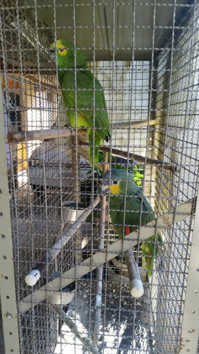 A Polícia Militar Ambiental apreendeu duas aves "papagaio" (um deles da espécie "do mangue") que estavam, sendo criados em cativeiro em residência de uma propriedade rural do bairro Santa Helena, nas proximidades da Fazenda do Estado.